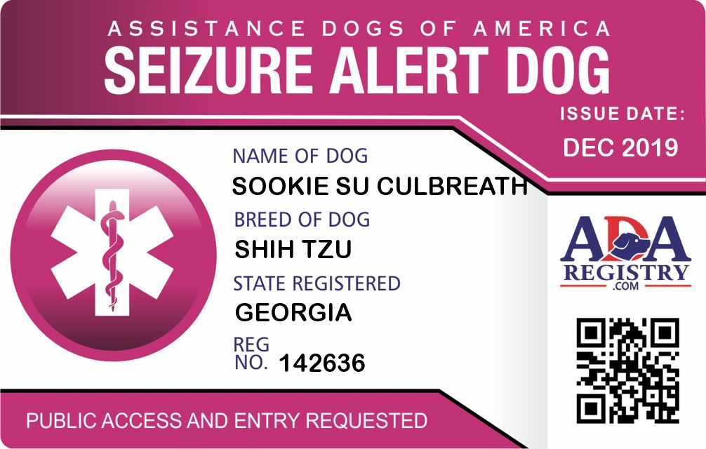 Seizure Assistance Dog Registration for Sookie Su Culbreath