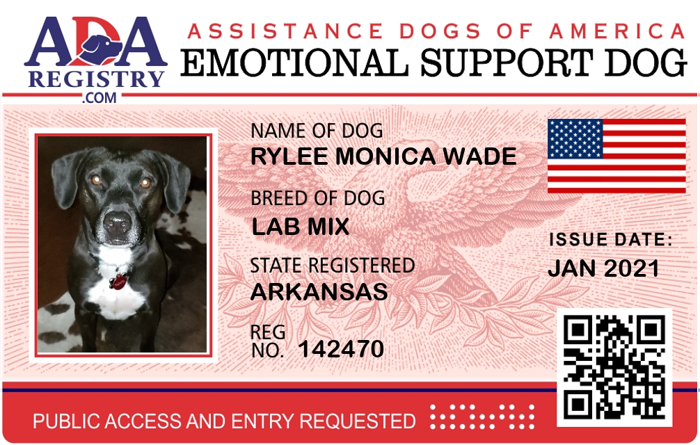 Emotional Support Dog Registration for Rylee Monica Wade
