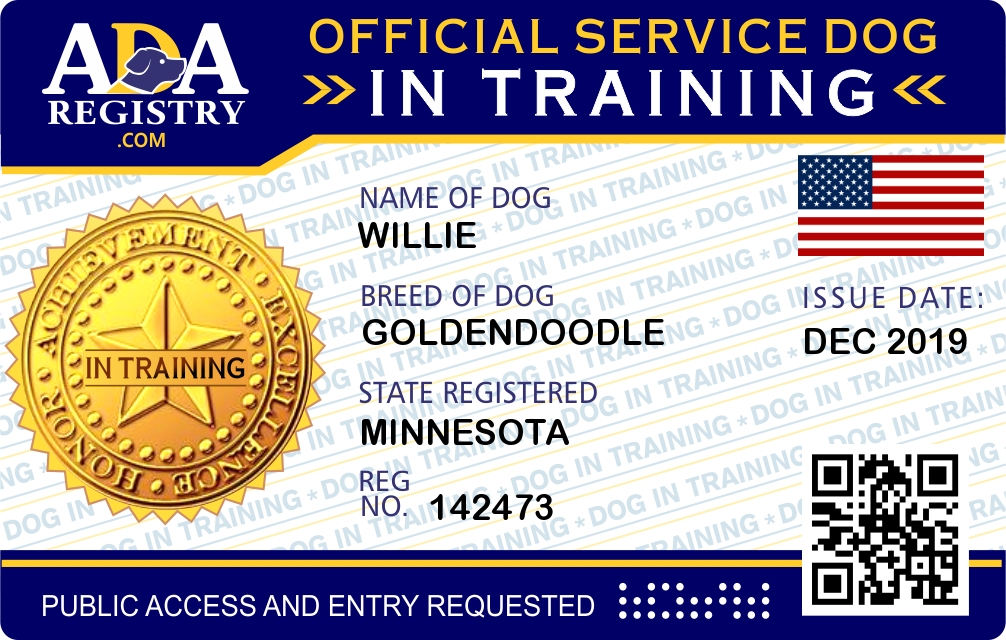 Service Dog In Training Registration for Willie