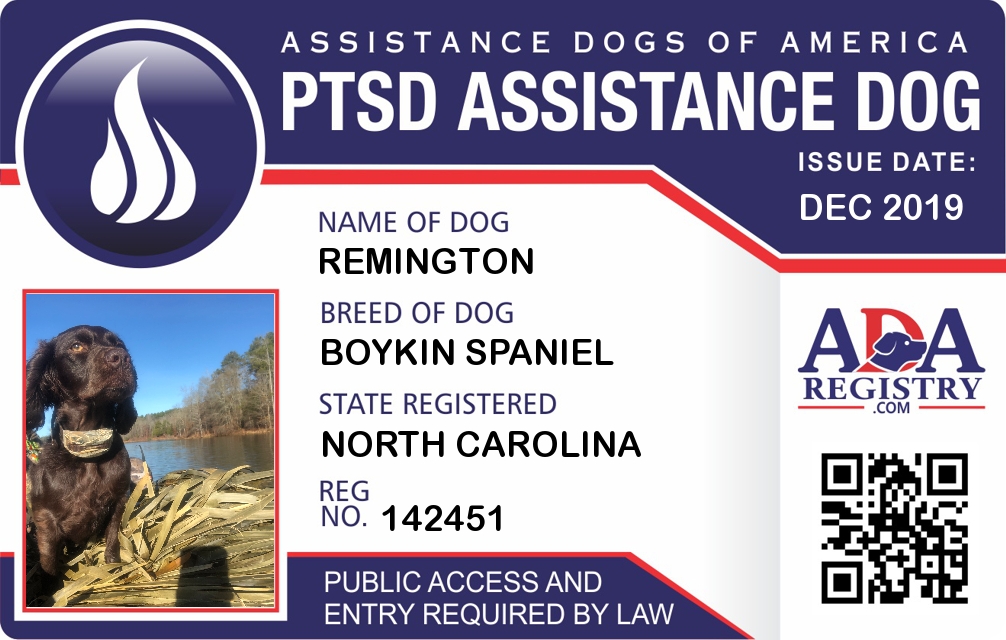 PTSD Assistance Dog Registration for Remington