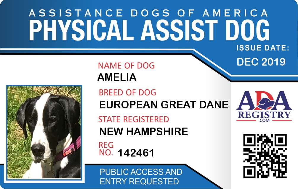 Physical Assistance Dog Registration for Amelia