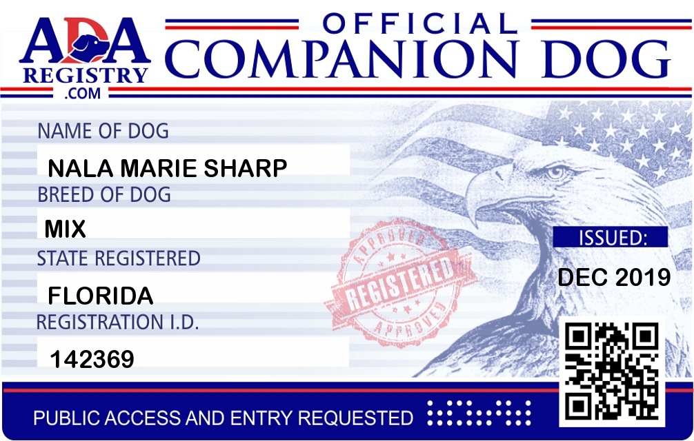 Companion Dog Registration for Nala Marie Sharp