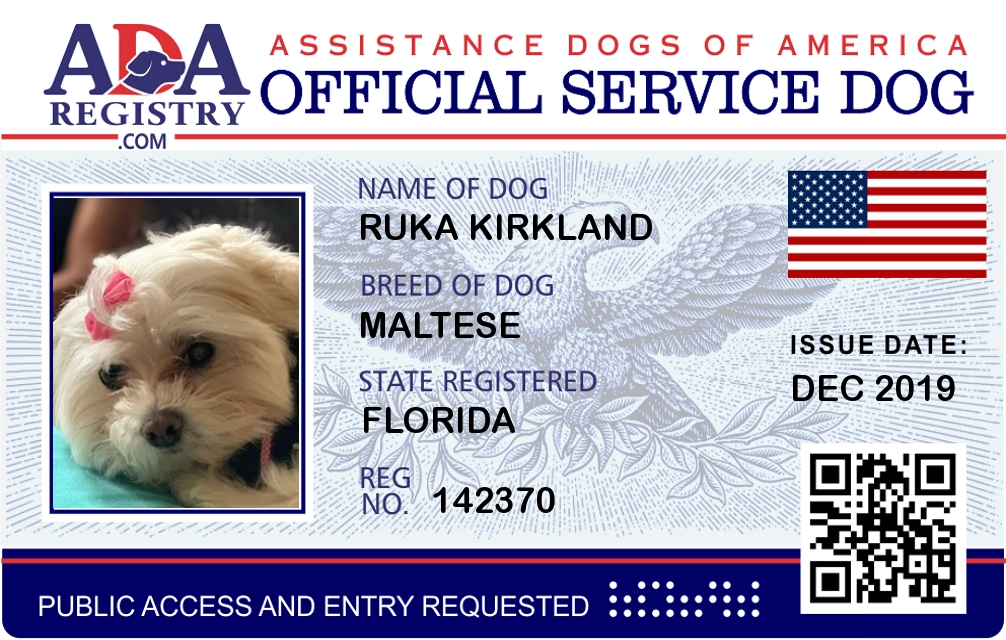 Service Dog Registration for Ruka Kirkland