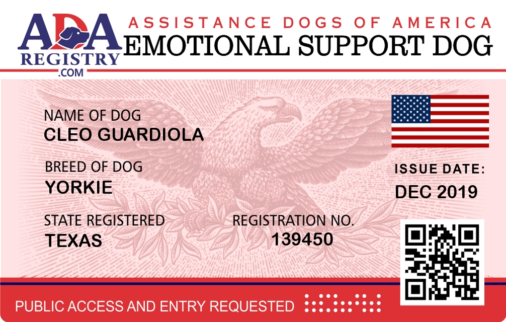 Emotional Support Dog Registration for Cleo Guardiola