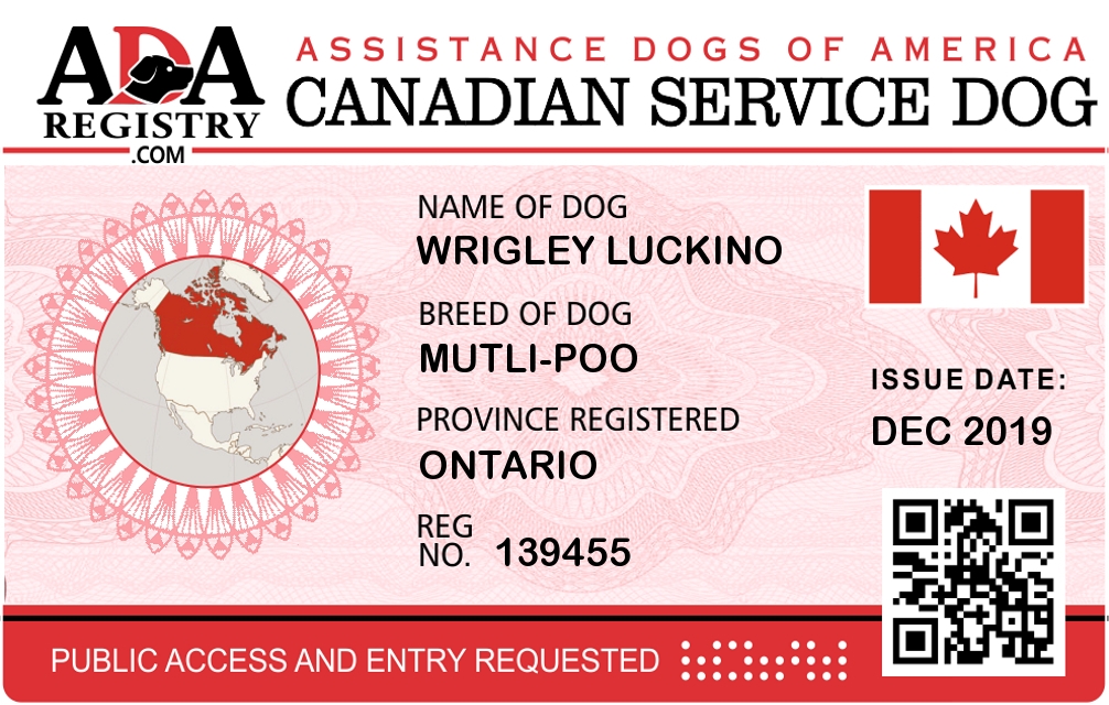 Service Dog Registration for Wrigley Luckino