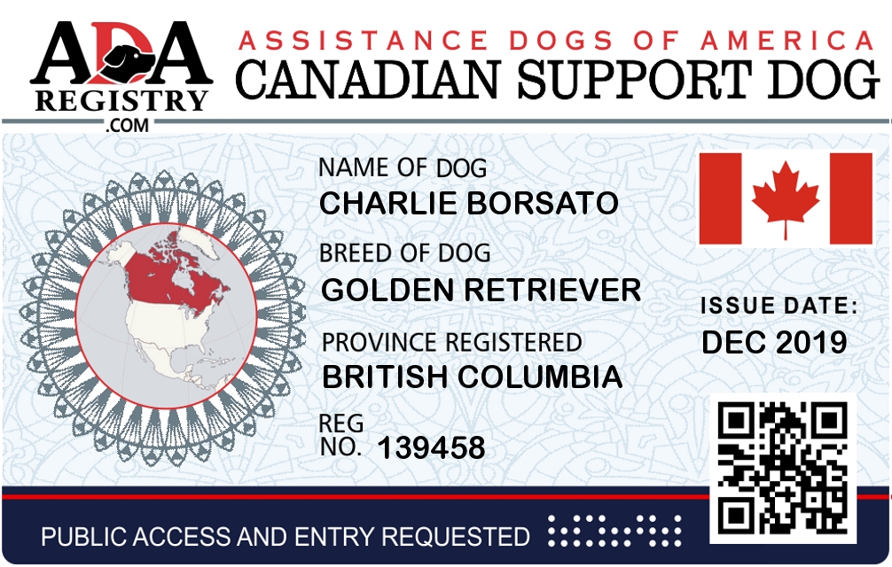 Emotional Support Dog Registration for Charlie Borsato