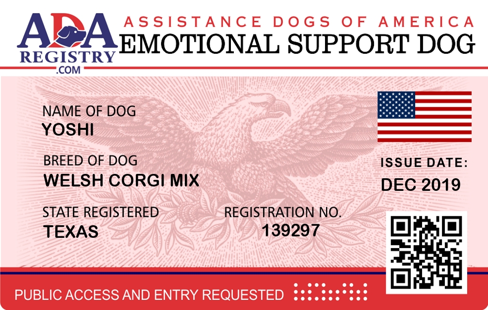 Psychiatric Service Dog Registration for Sugar Cookie Gerson