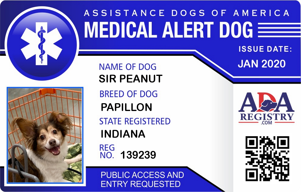 Medical Alert Dog Registration for Sir Peanut