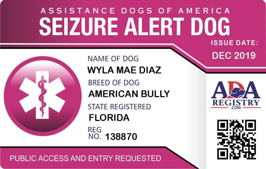Seizure Assistance Dog Registration for Wyla mae diaz