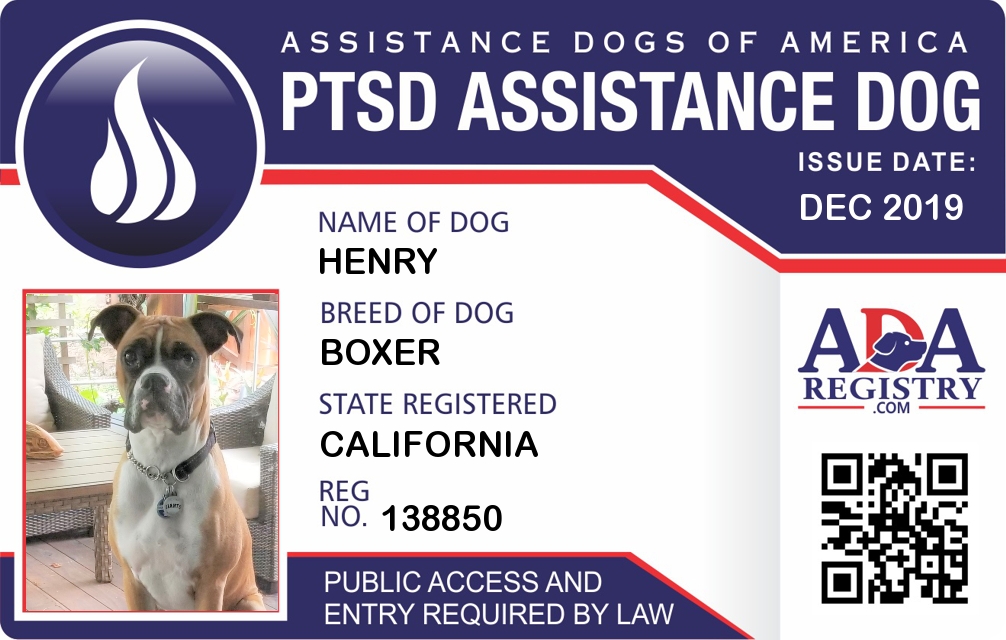 PTSD Assistance Dog Registration for Henry