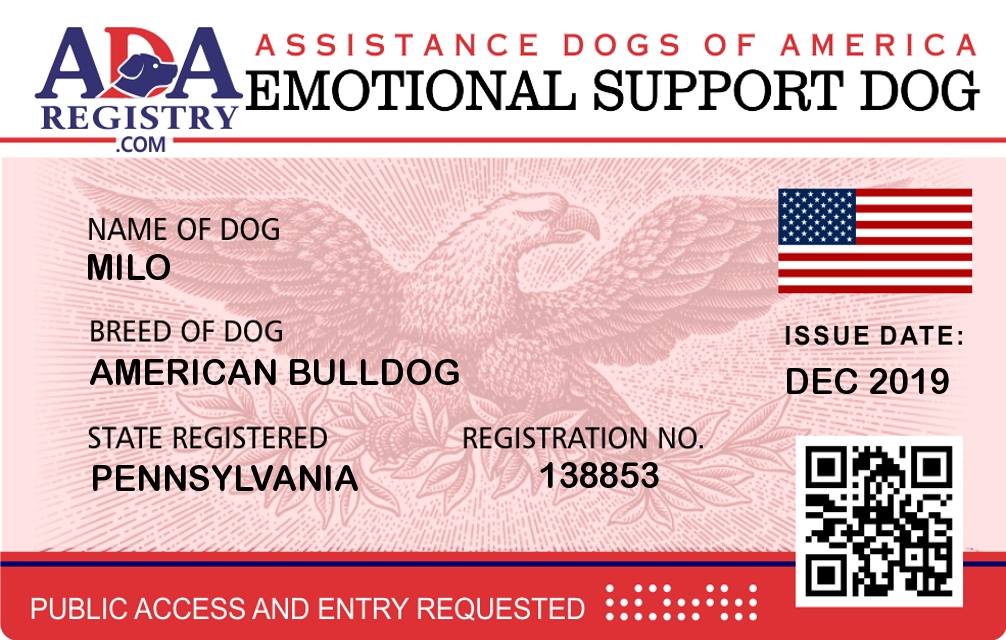 Emotional Support Dog Registration for milo