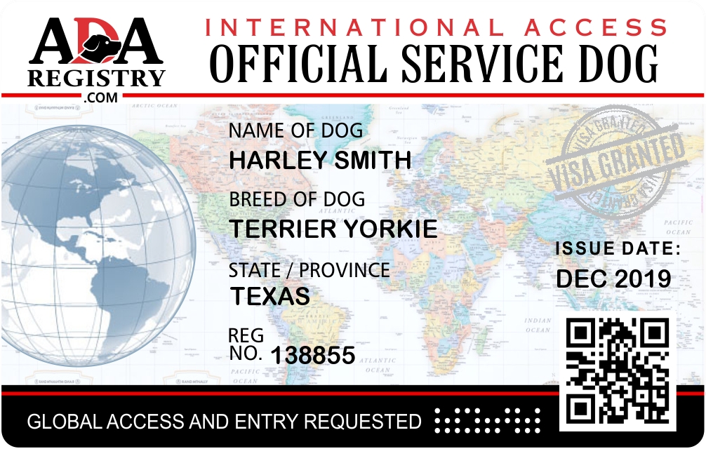 International Service Dog Registration for Harley Smith