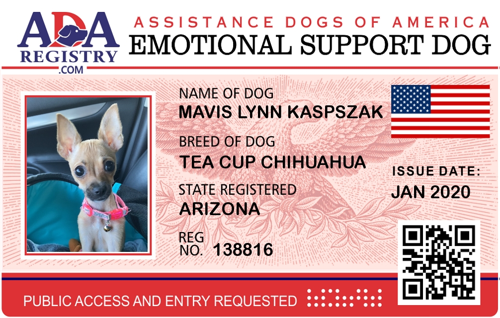 Emotional Support Dog Registration for Mavis Lynn Kaspszak