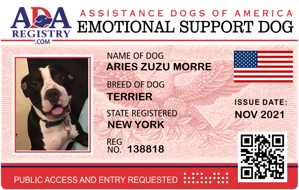 Emotional Support Dog Registration for Aries Zuzu Morre