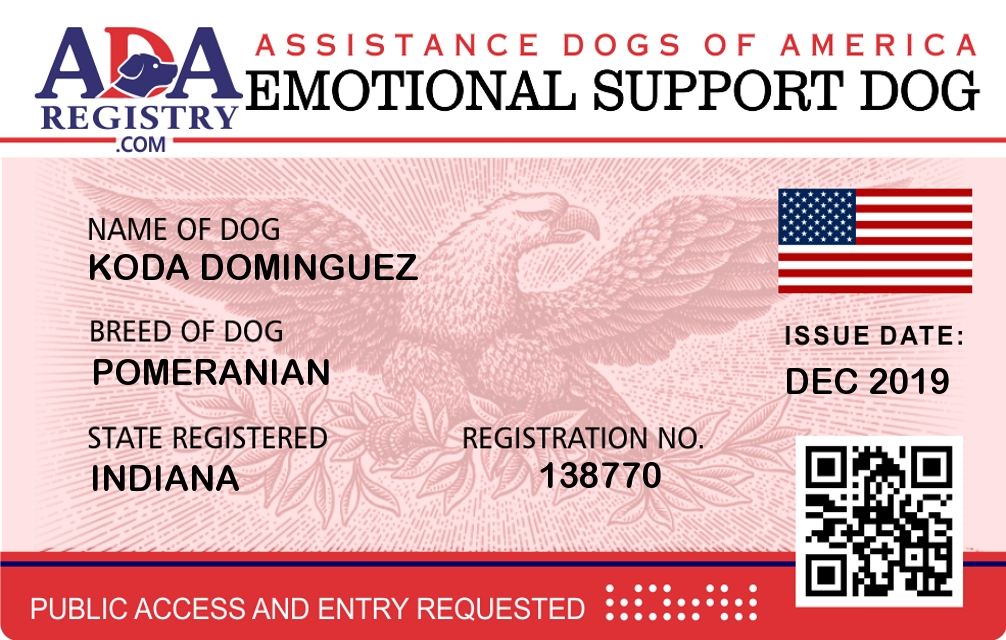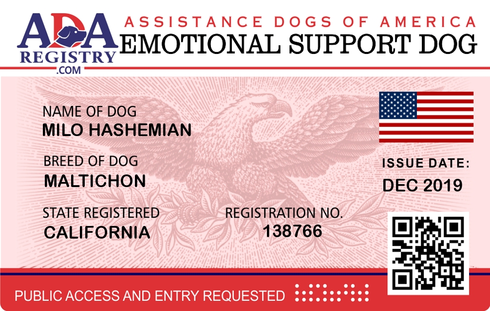 Emotional Support Dog Registration for ALEXIS MAZZARELLI
