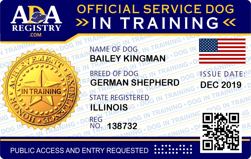 Service Dog In Training Registration for Bailey kingman