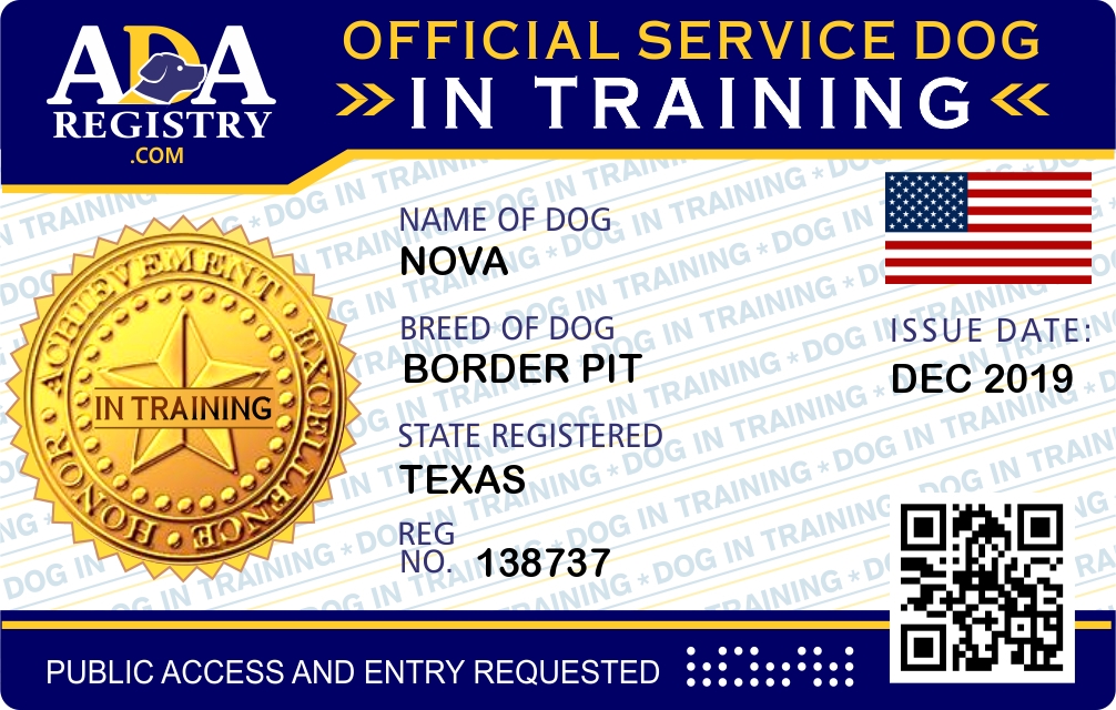 Service Dog In Training Registration for Nova