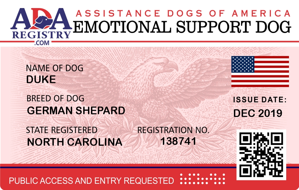 Emotional Support Dog Registration for Duke