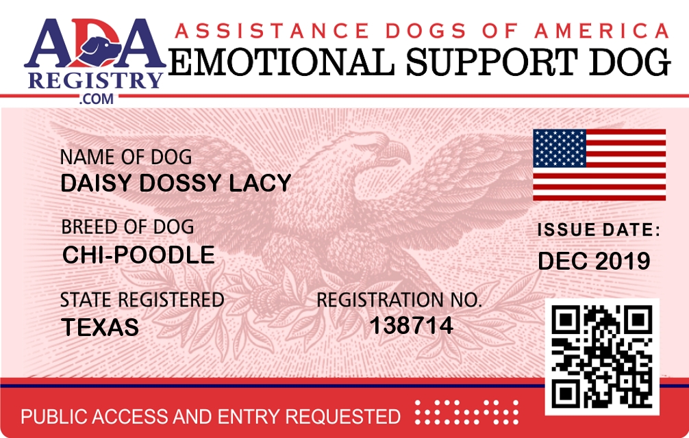 Emotional Support Dog Registration for Daisy Dossy Lacy
