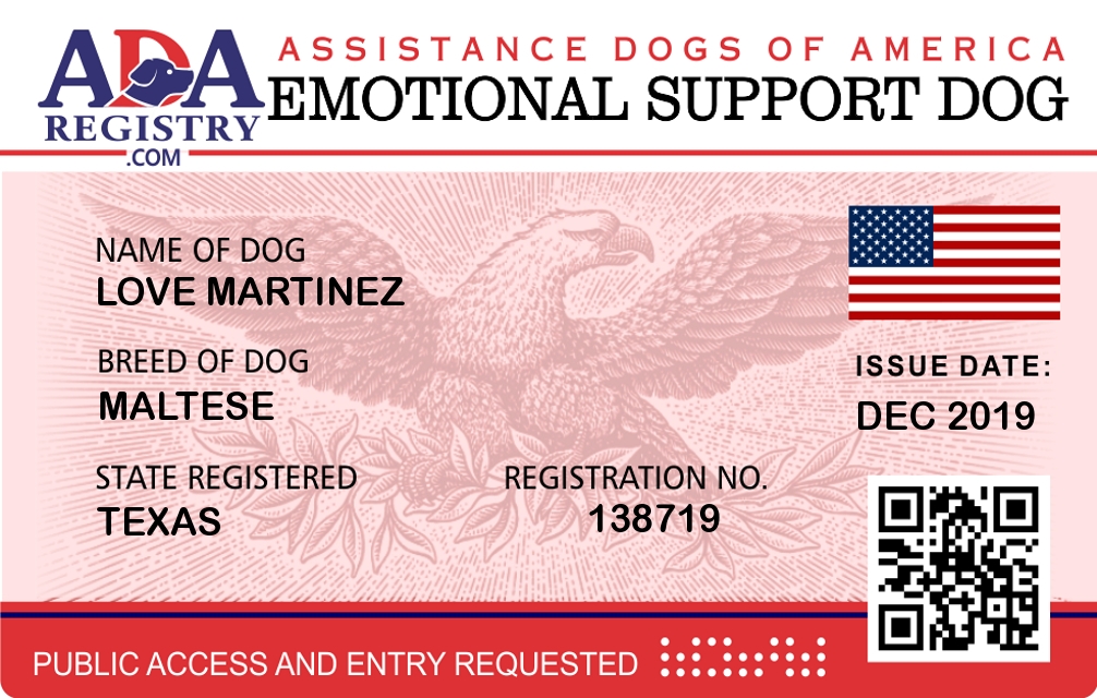 Emotional Support Dog Registration for Love Martinez