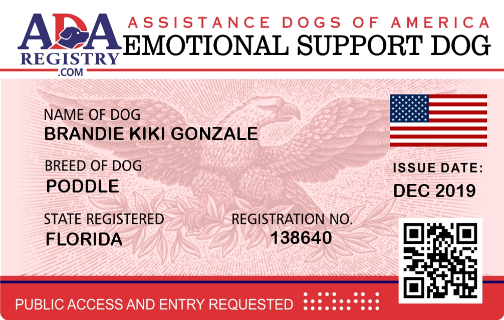 Emotional Support Dog Registration for Brandie kiki gonzale