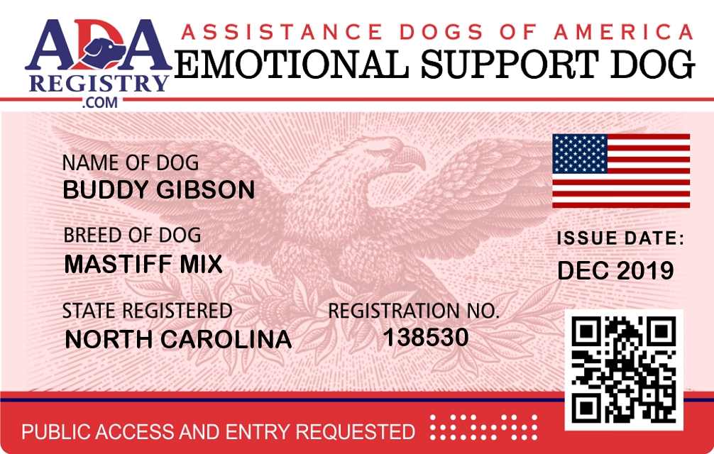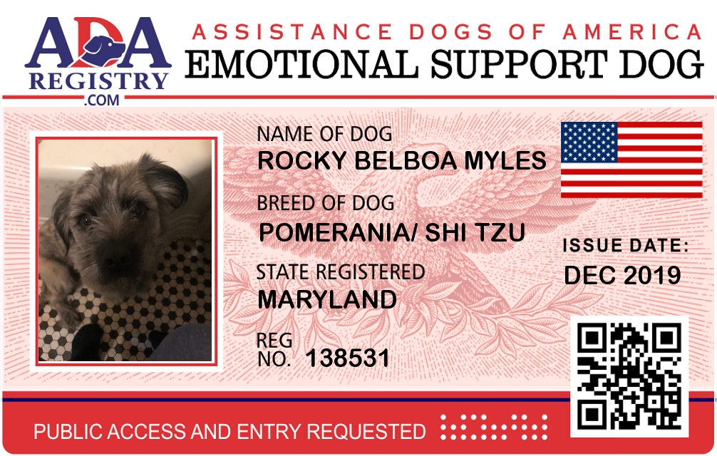 Emotional Support Dog Registration for Rocky BelBoa Myles
