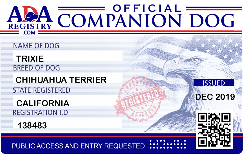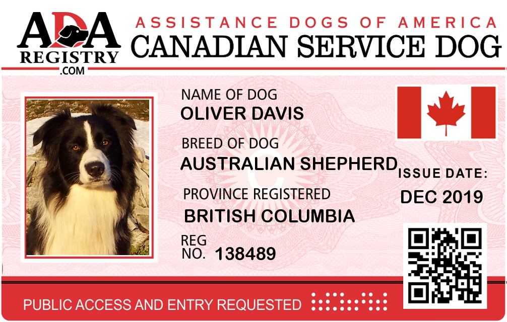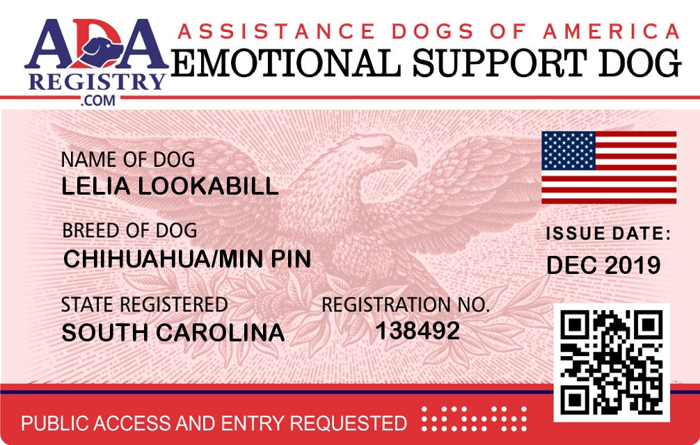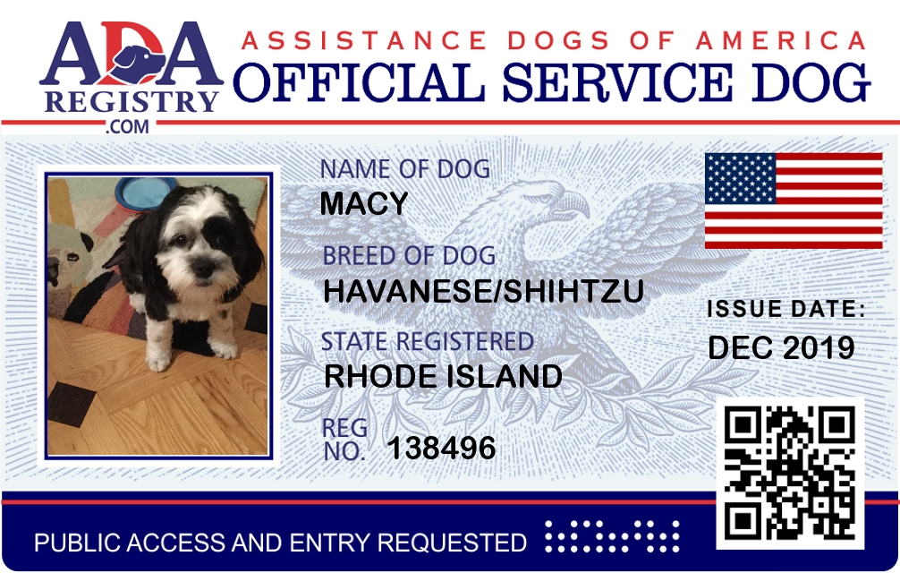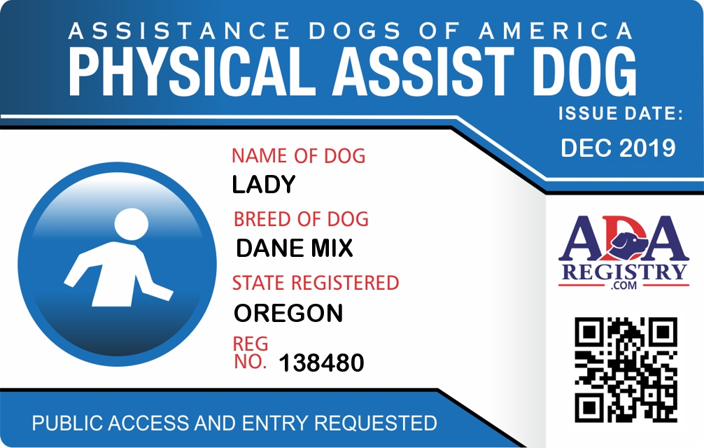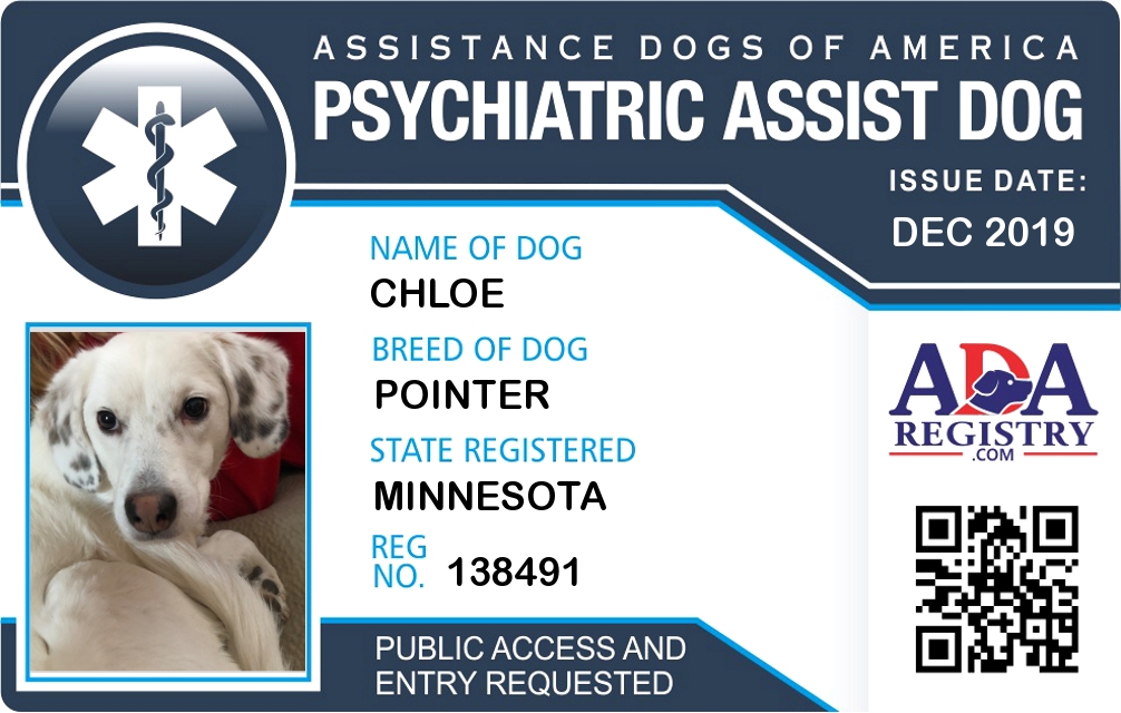 PTSD Assistance Dog Registration for Bella Luna Holman