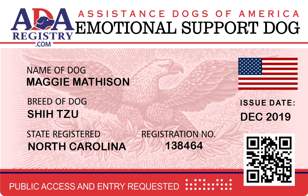 Emotional Support Dog Registration for MAGGIE MATHISON