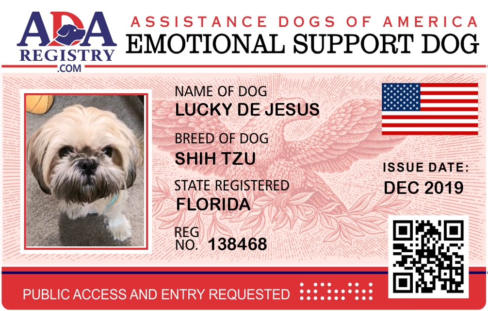 Emotional Support Dog Registration for Lucky De Jesus