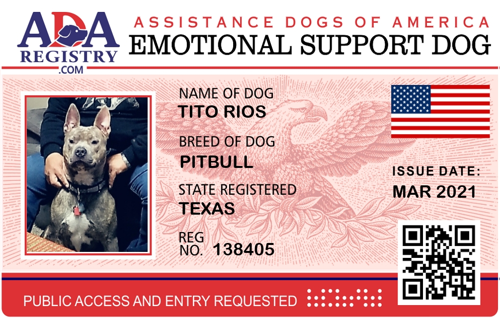 Emotional Support Dog Registration for Tito Rios