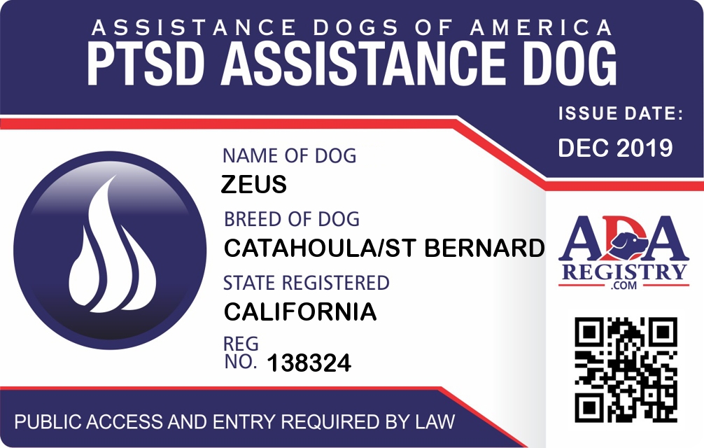 PTSD Assistance Dog Registration for Zeus