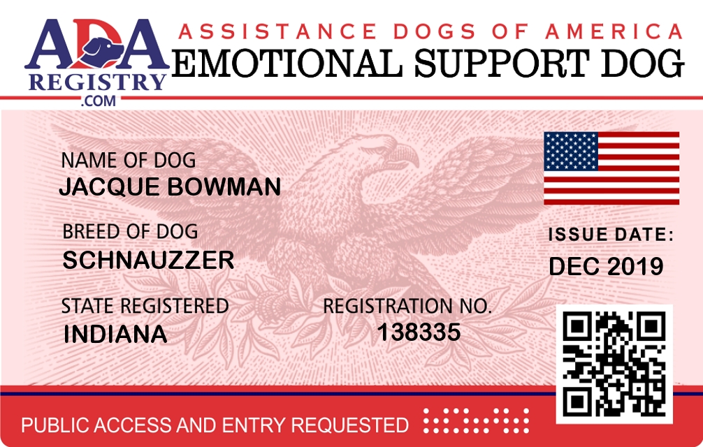 Emotional Support Dog Registration for Jacque Bowman