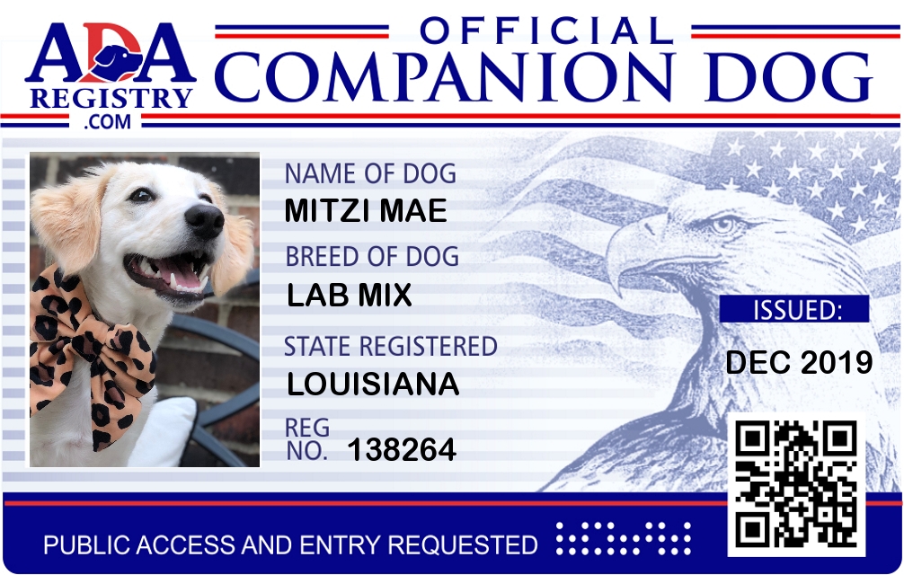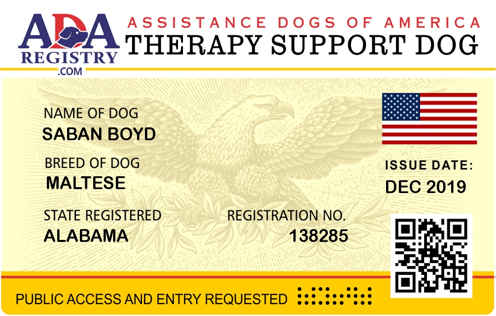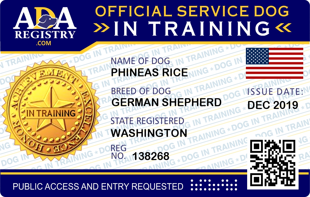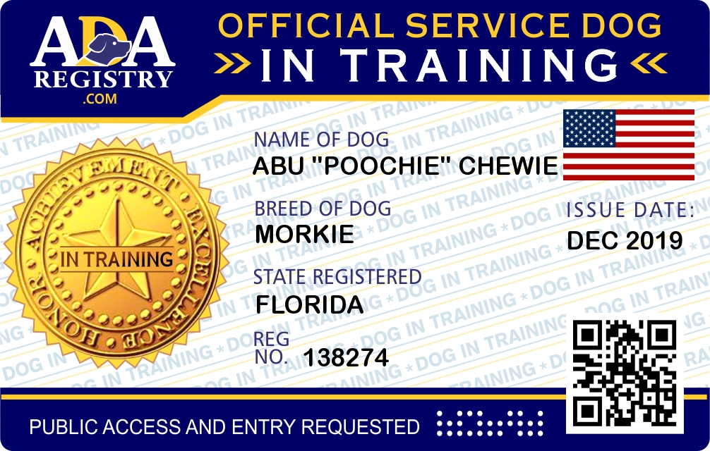 Service Dog In Training Registration for Abu "Poochie" Chewie