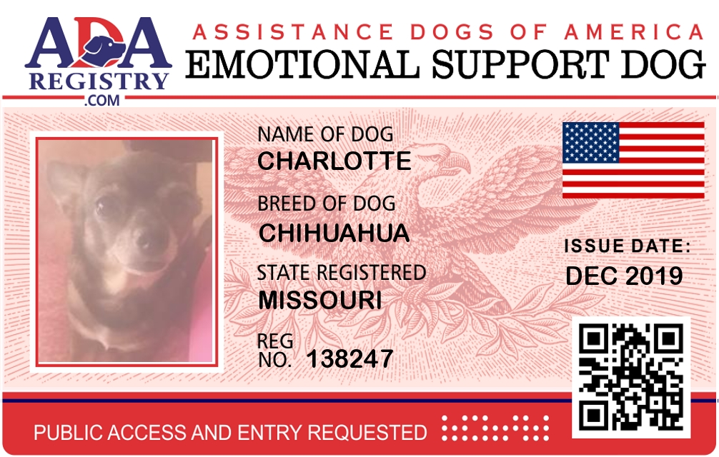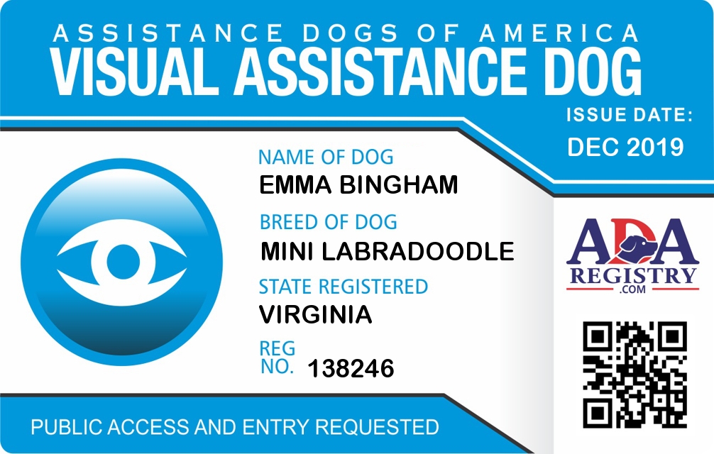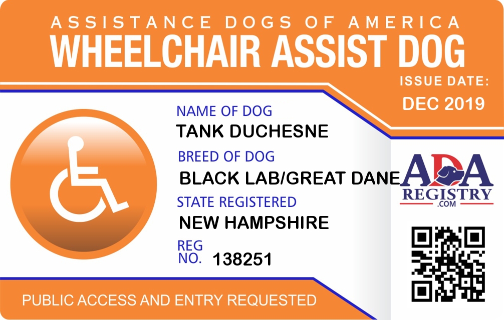 Wheel Chair Assistance Dog Registration for Tank Duchesne