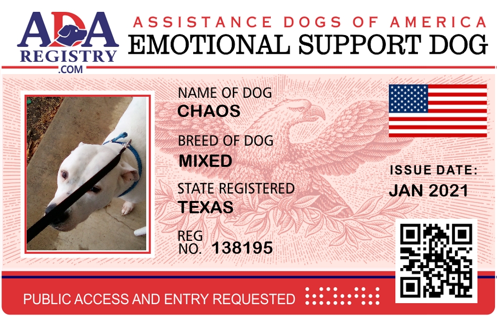 Emotional Support Dog Registration for Chaos