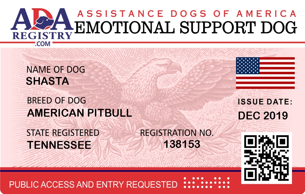 PTSD Assistance Dog Registration for Bailey Schaubroeck