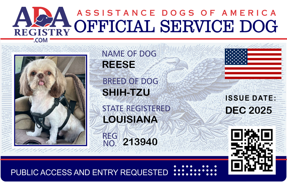 Emotional Support Dog Registration for LADY CARAMEL 'LADY'