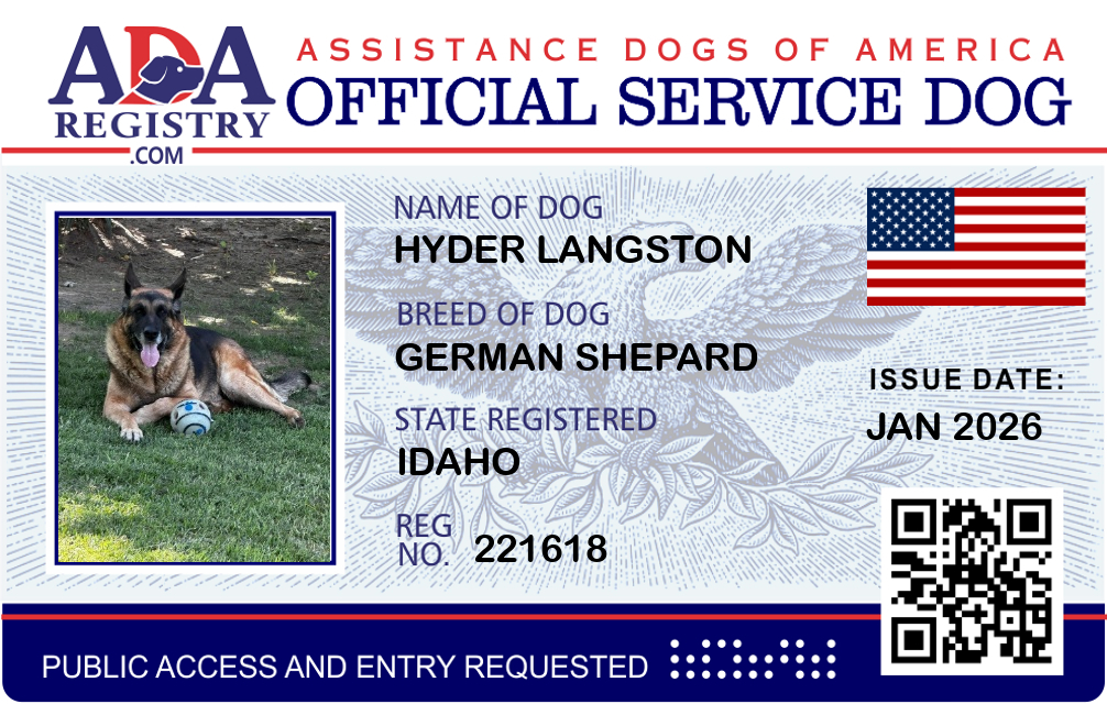 Service Dog Registration for Hyder Langston