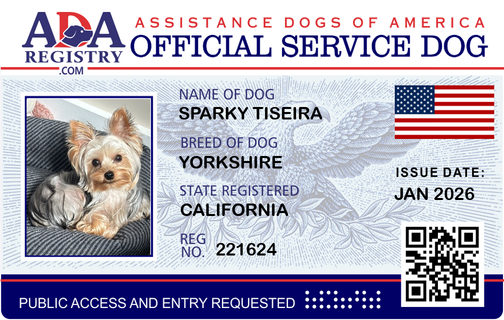 Service Dog Registration for Sparky Tiseira