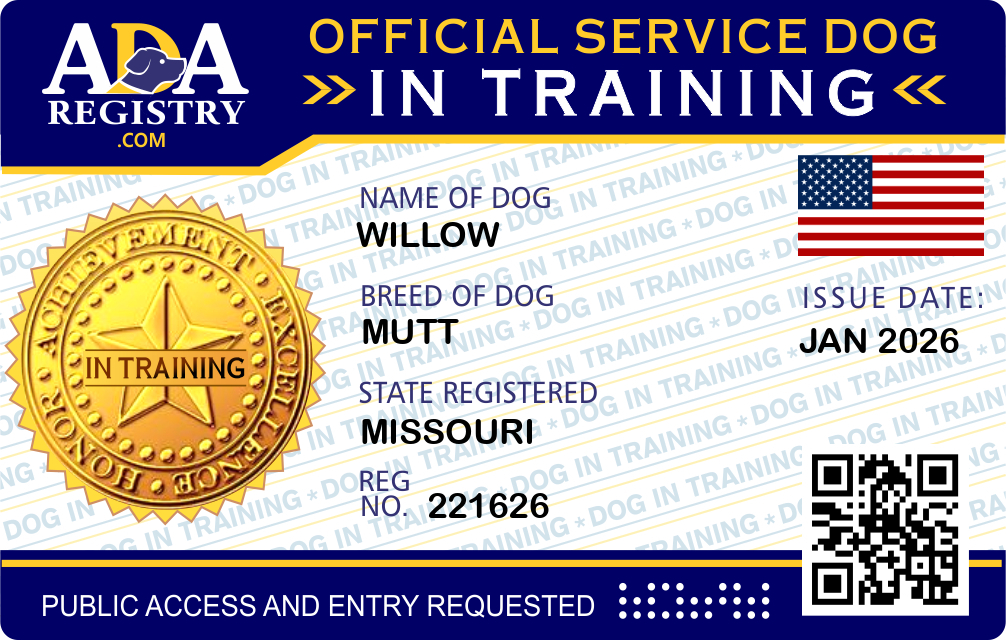 Service Dog In Training Registration for Willow