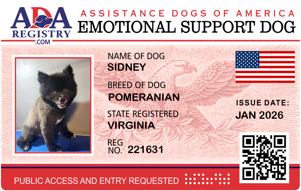 Emotional Support Dog Registration for Sidney