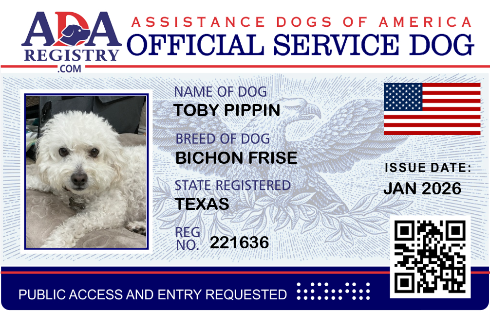 Service Dog Registration for Toby Pippin