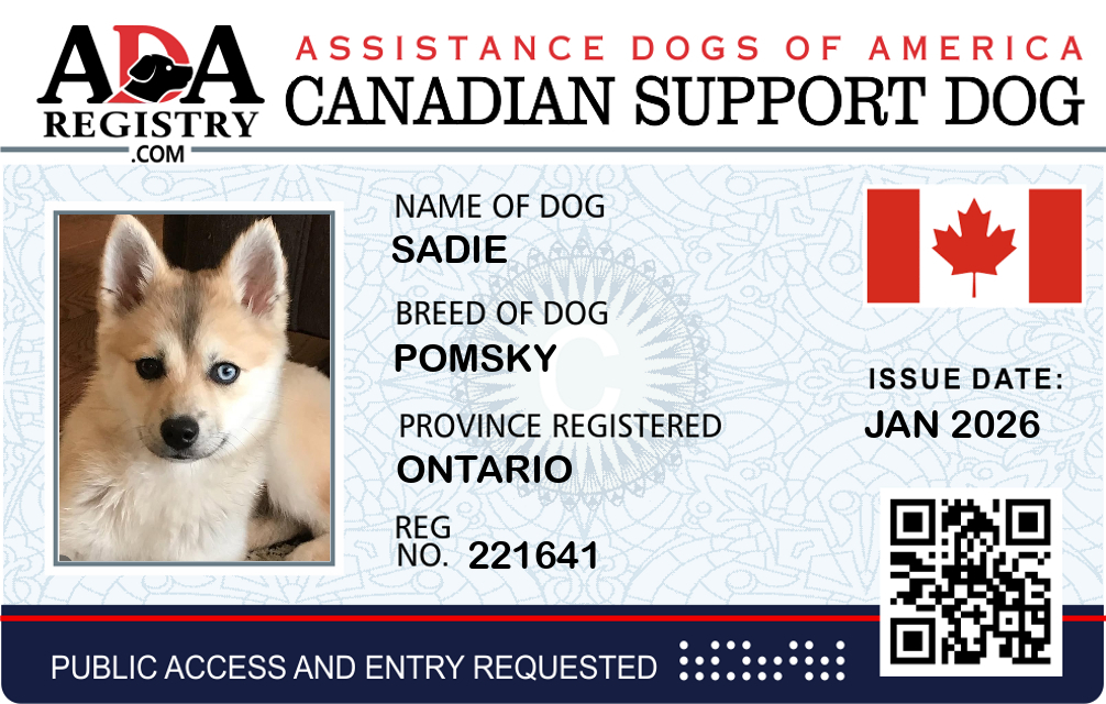 Service Dog In Training Registration for Sadie