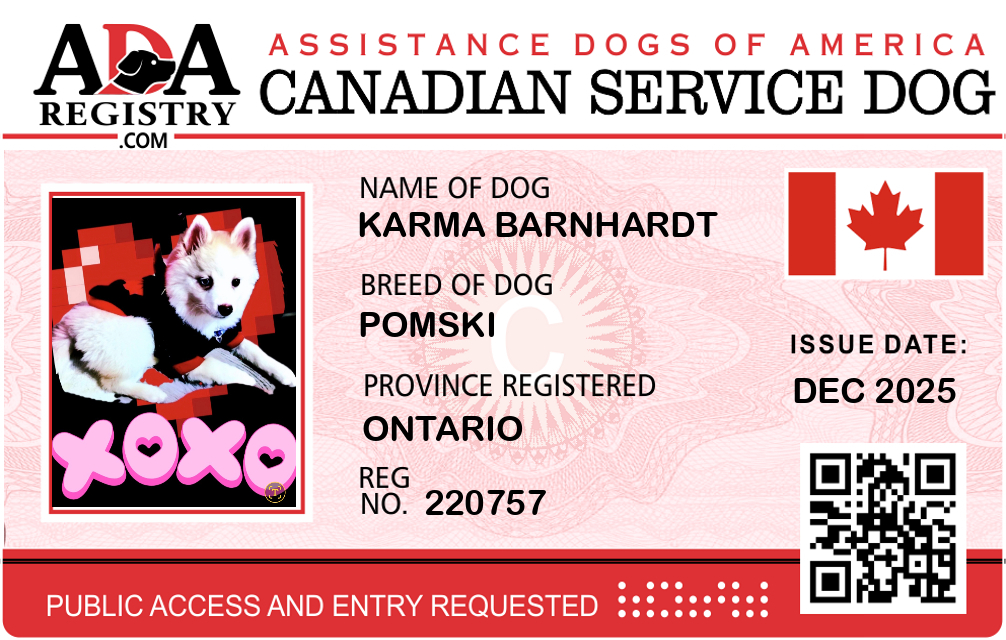 Service Dog Registration for Karma Barnhardt