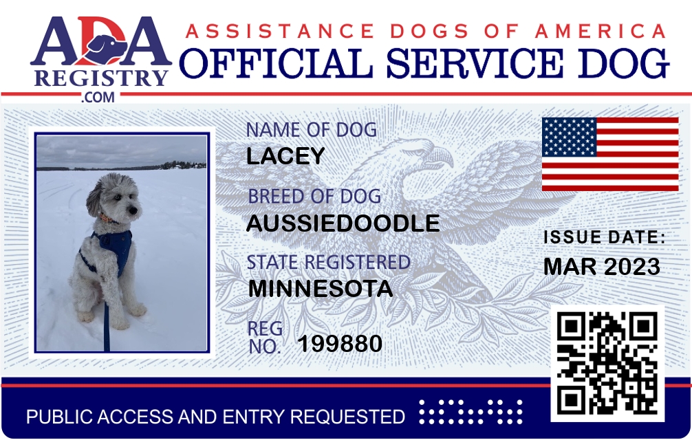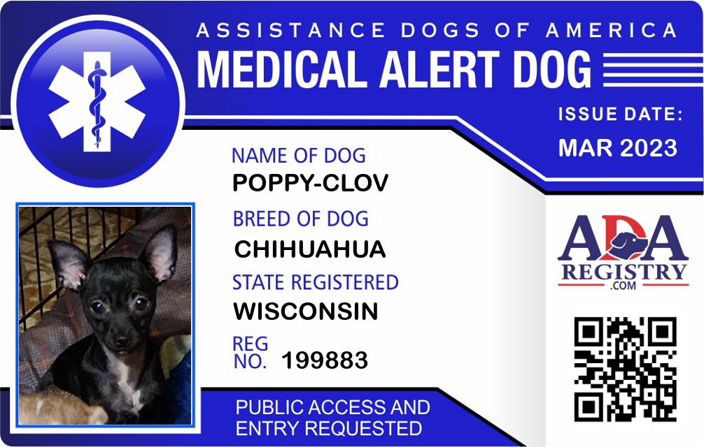 Simba is a medical alert dog. Owner has narcolepsy and cataplexy. Simba warns Owner by barking, nudging, or licking, directing owner to sit down, or lay down before passing out. If a narcoleptic event happens, then Simba is trying to push against Owner or lay on owners chest, helping to wake Owner up.