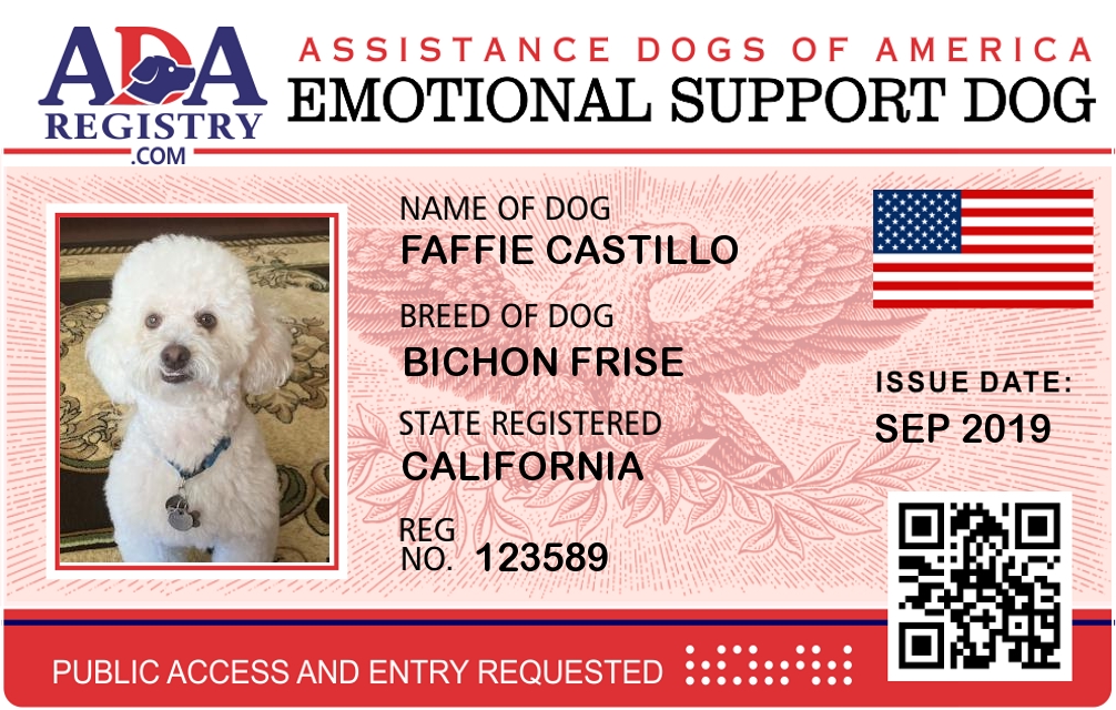 Emotional Support Dog Registration for Faffie Castillo