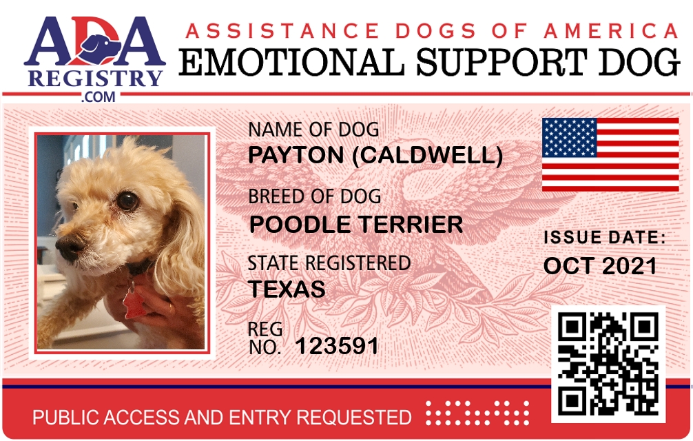 Emotional Support Dog Registration for Payton (Caldwell)