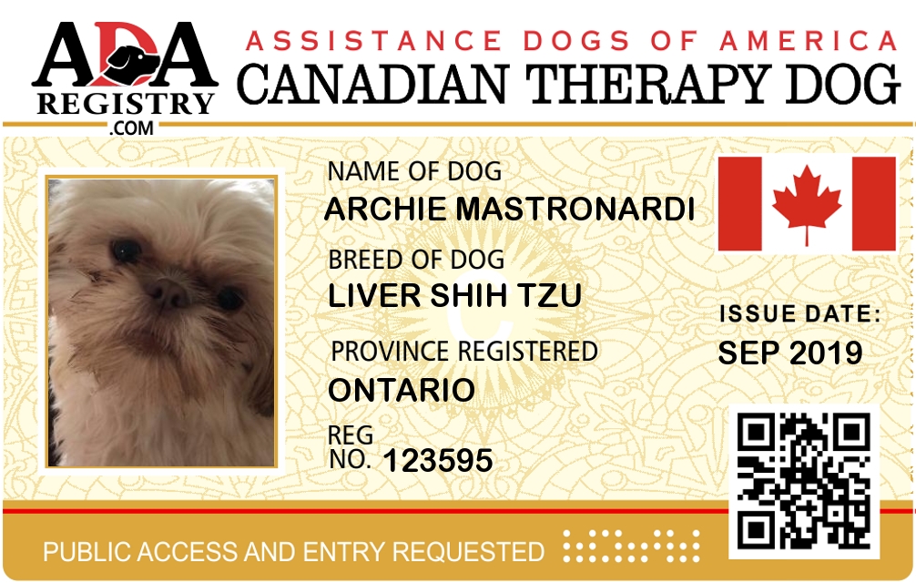 Therapy Dog Registration for Archie Mastronardi