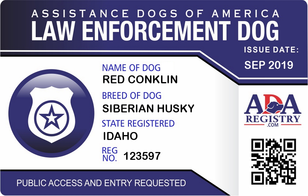 Police / Law Enforcement Dog Registration for Red conklin