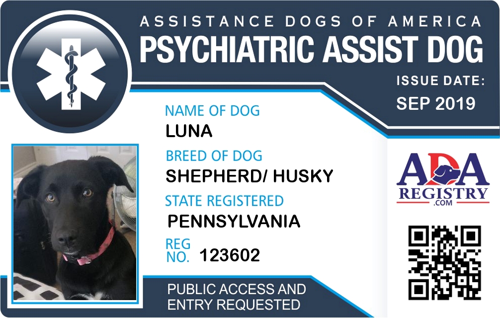 Psychiatric Service Dog Registration for Luna